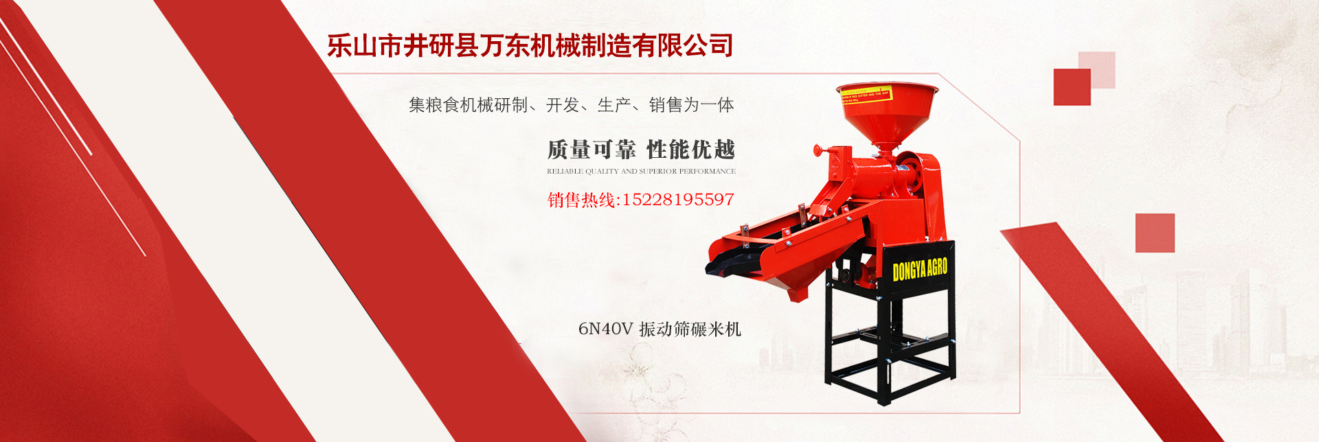 樂山市井研縣萬東機械制造有限公司注冊于2015年,集糧食機械研制、開發、生產、銷售為一體。技術力量雄厚,加工設備優良,品種齊全,質量精湛。公司主要生產碾米成套設備和谷物烘干、清理、去石、礱谷、谷糙分離、碾米、白米整理、拋光、包裝等糧食加工機械,并提供大型碾米成套設備的設計、安裝及服務。產品質量******、性能優越,暢銷全國各地,并遠銷東南亞及日本地區。      “質量過關,用戶至上”是我們一貫信奉的經營理念,以“誠信”為己任,用良好的服務來回報新老客戶對我們的支持與厚愛,攜手共創輝煌的明天。